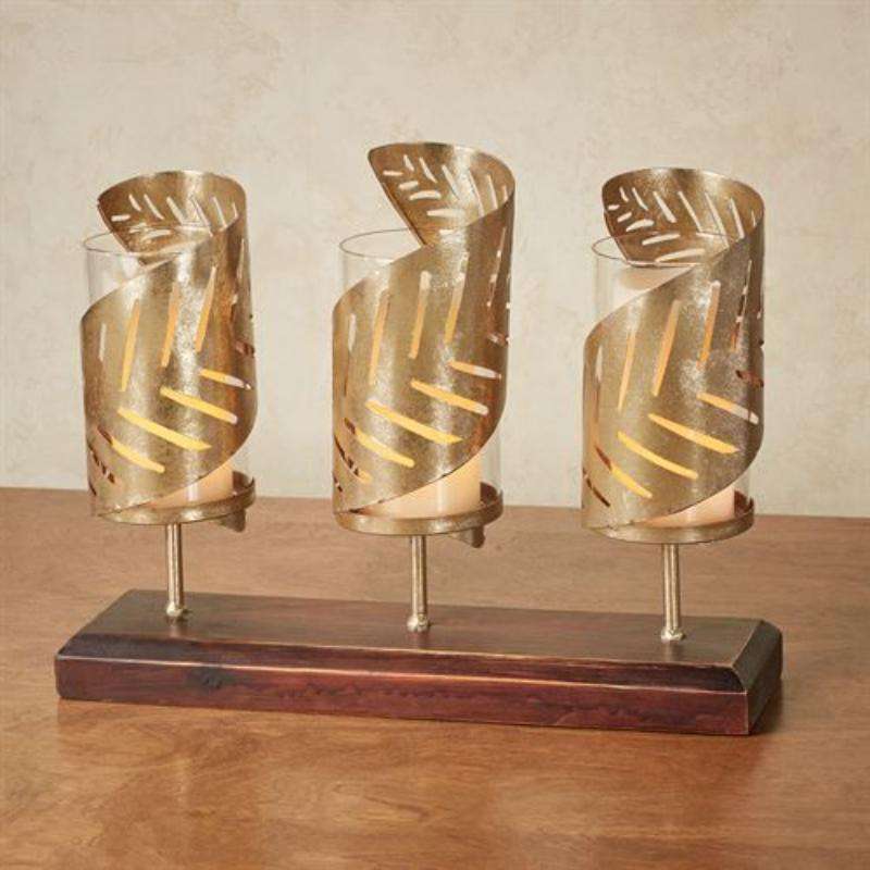 ชุดเชิงเทียนแบบตั้งทำจากโลหะและแบบไม้สามอันที่มีขนาดแตกต่างกันและดีไซน์เดียวกันเชิงเทียนจากอินเดียที่ดีที่สุด