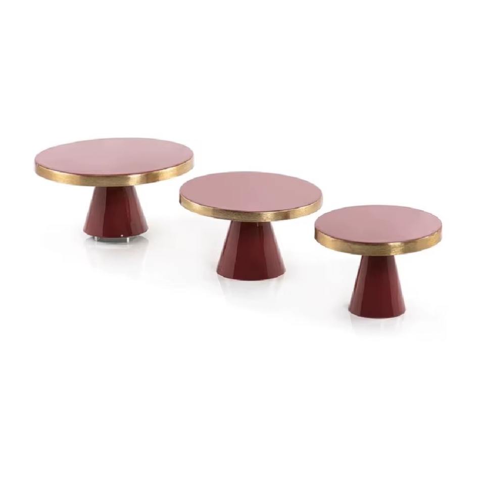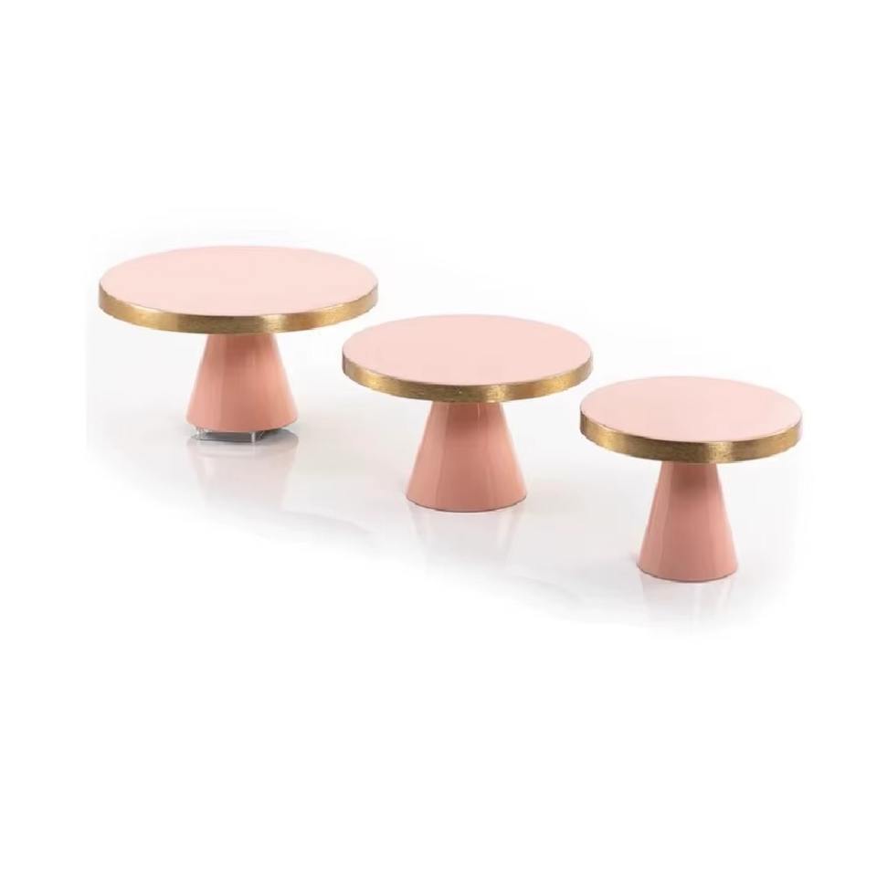 ชุดขาตั้งขนมหวานหินอ่อนสีชมพูสามชิ้น สำหรับโชว์ช็อกโกแลต คัพเค้ก และขนมอบ เหมาะสำหรับตกแต่งโต๊ะบุฟเฟ่ต์งานปาร์ตี้ จากอินเดีย