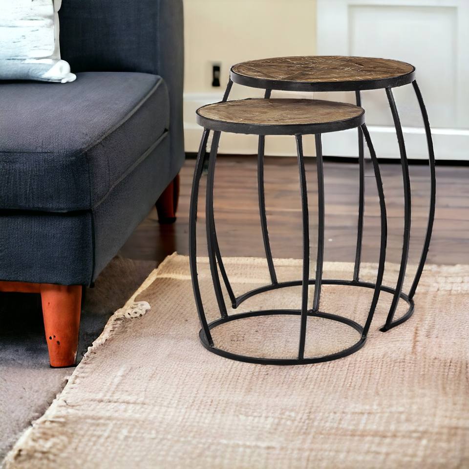 Set of Two 26\" Solid Wood Round End Tables in Black and Brown HMS Coffee Tables