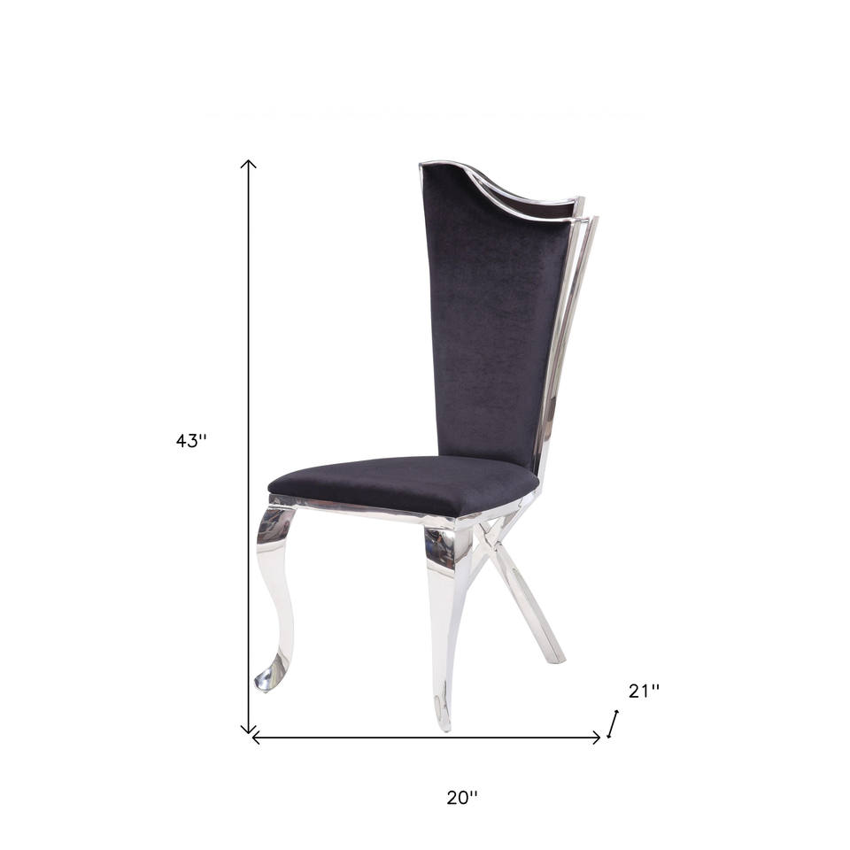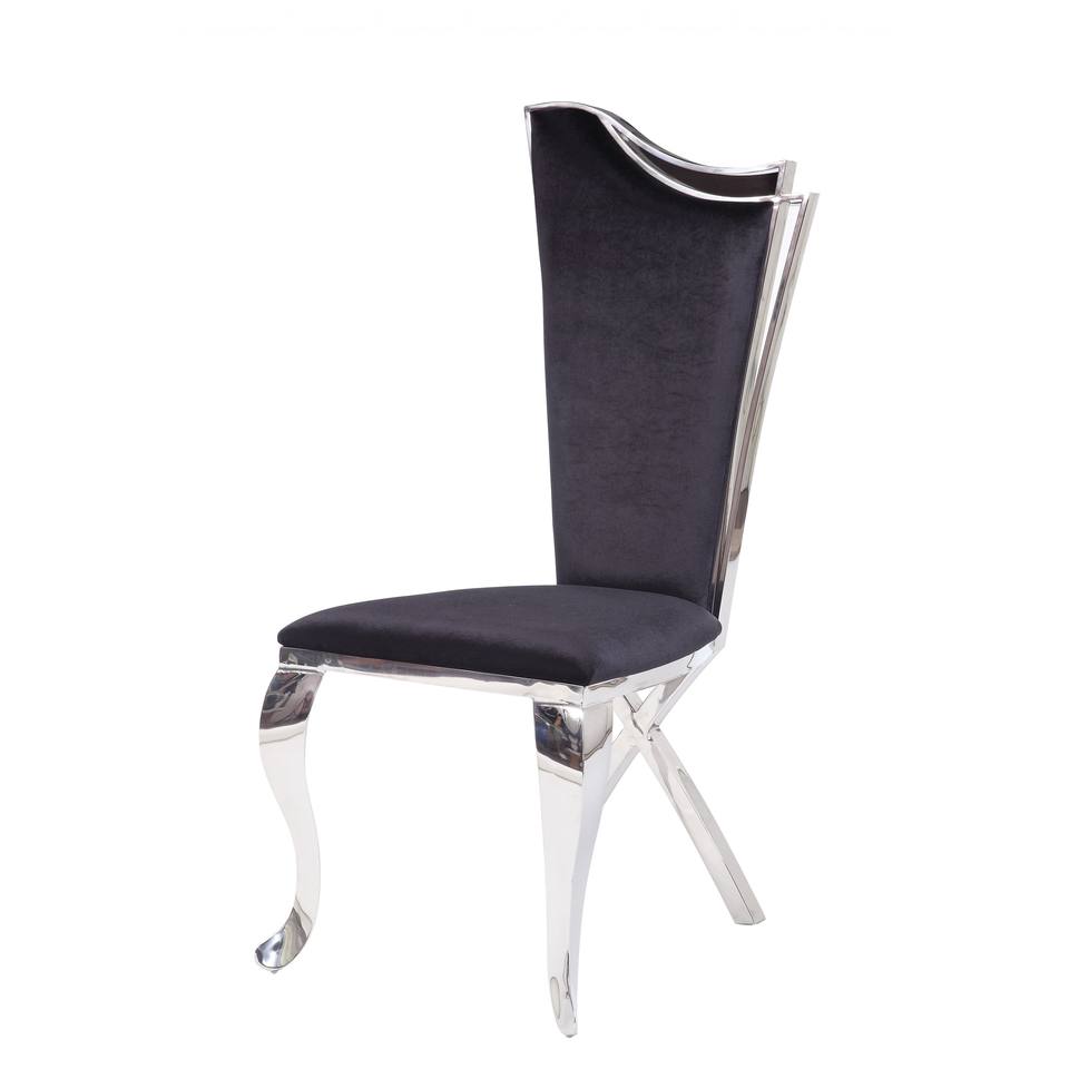 Set of Two Black and Silver Upholstered Fabric Dining Side Chairs HMS Model