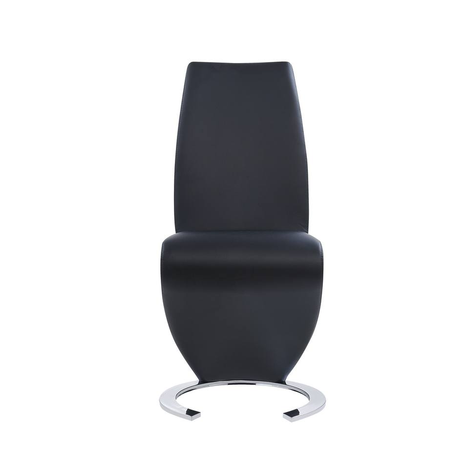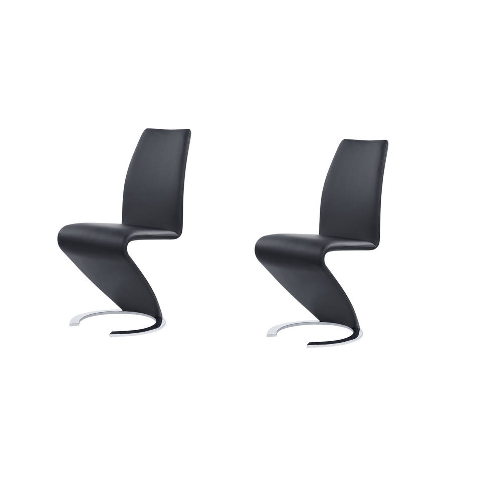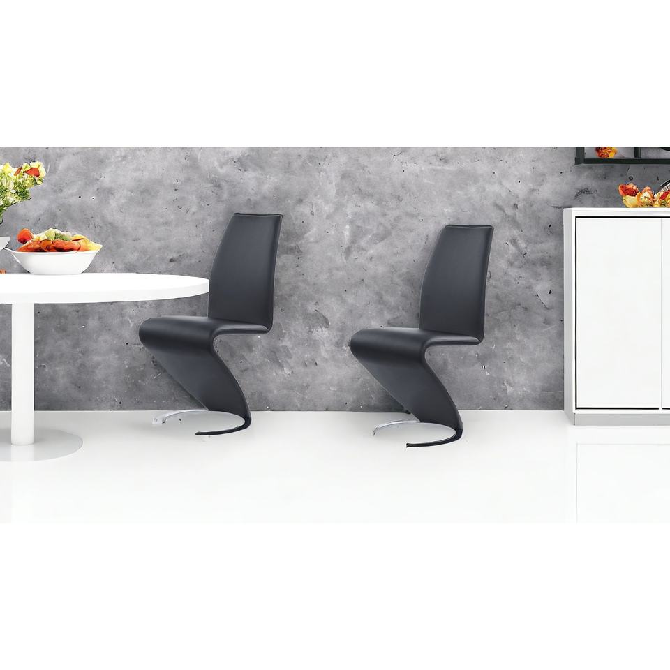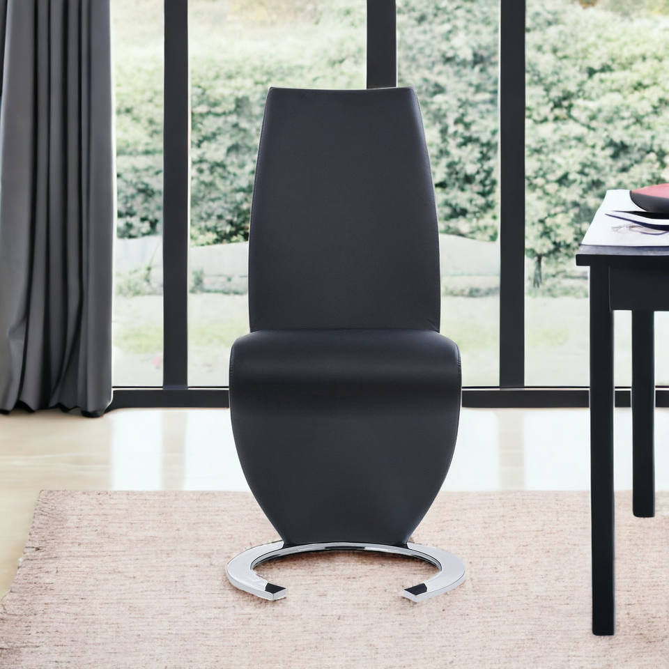Set of Two Black and Silver Upholstered Faux Leather Dining Parsons Chairs by HMS