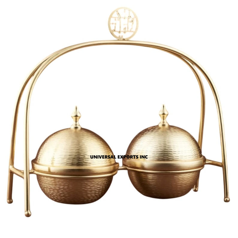 ชุดชามช็อคโกแลตสองใบเคลือบสีทองดีไซน์เนอร์ทรงกลมหรูหราดีไซน์ใหม่ชามช็อคโกแลตแฟนซี