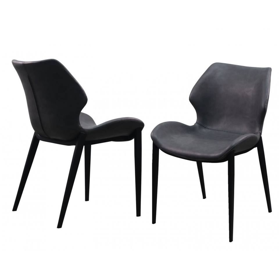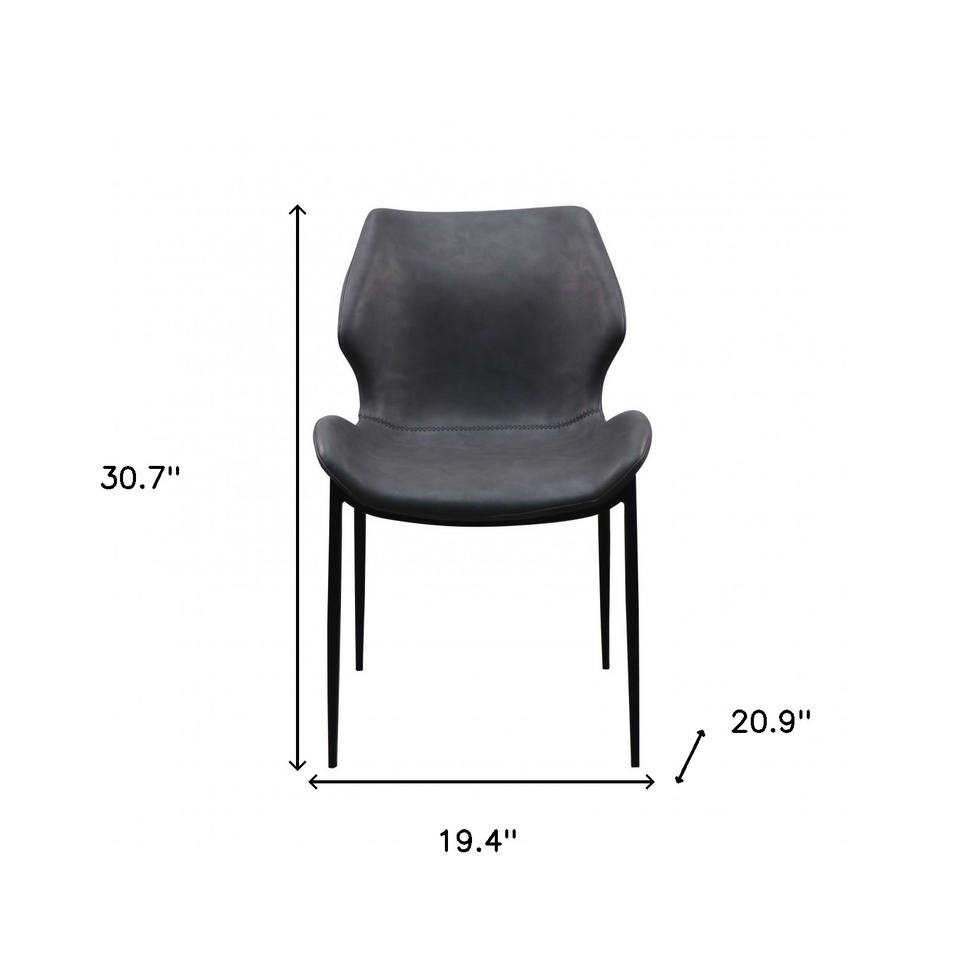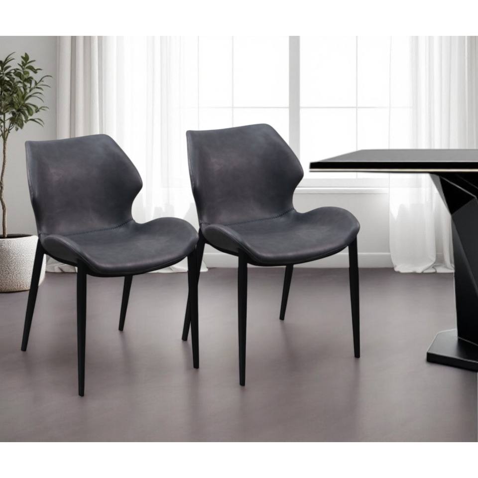 Set of Two Gray and Black Faux Leather Wing Back Dining Side Chairs Upholstered in Elegant HMS Style