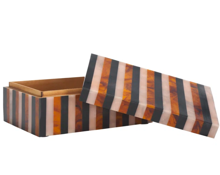 กล่องเครื่องประดับทำด้วยมือทำจากเรซินสองชุดพร้อมฝาปิดสีงานฝีมือธรรมชาติทรงสี่เหลี่ยมผืนผ้าเก็บของเน้นสำหรับตกแต่งบ้านสีน้ำตาลดำ