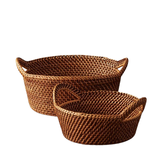 ชุดตะกร้าหวายคุณภาพเยี่ยมอเนกประสงค์ 2 ใบ ตะกร้าเก็บขนมปังและผลไม้สไตล์โมเดิร์นจากอินเดีย