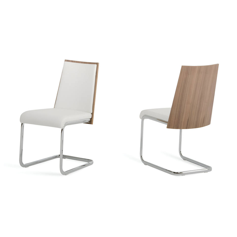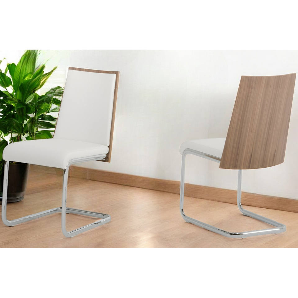 ชุดเก้าอี้รับประทานอาหารหนังเทียมหุ้มเบาะสีขาวและสีเงินสองชุด HMS