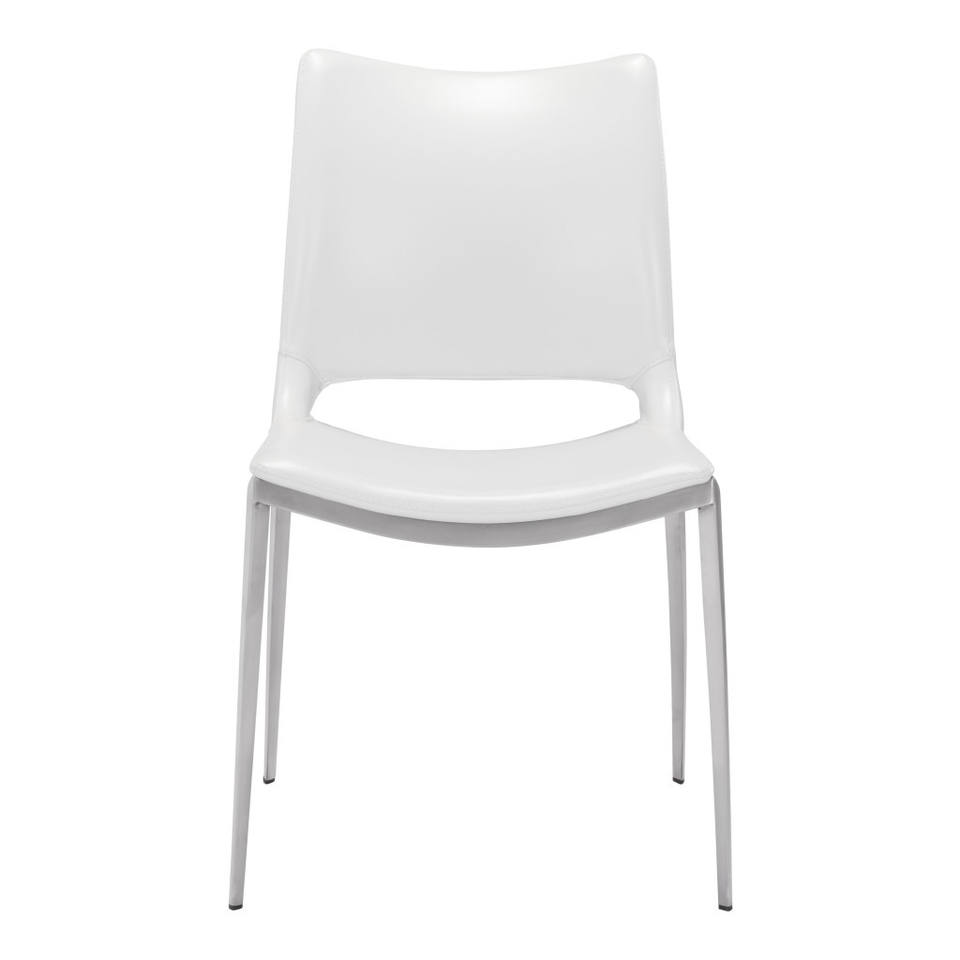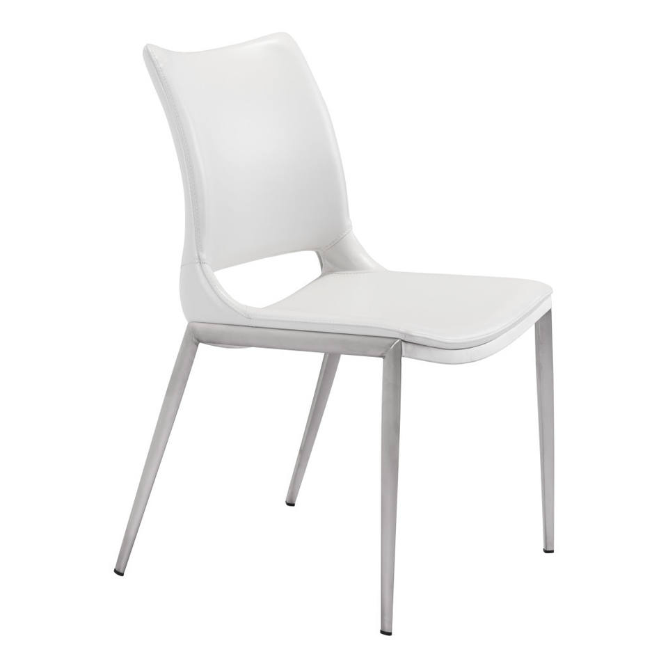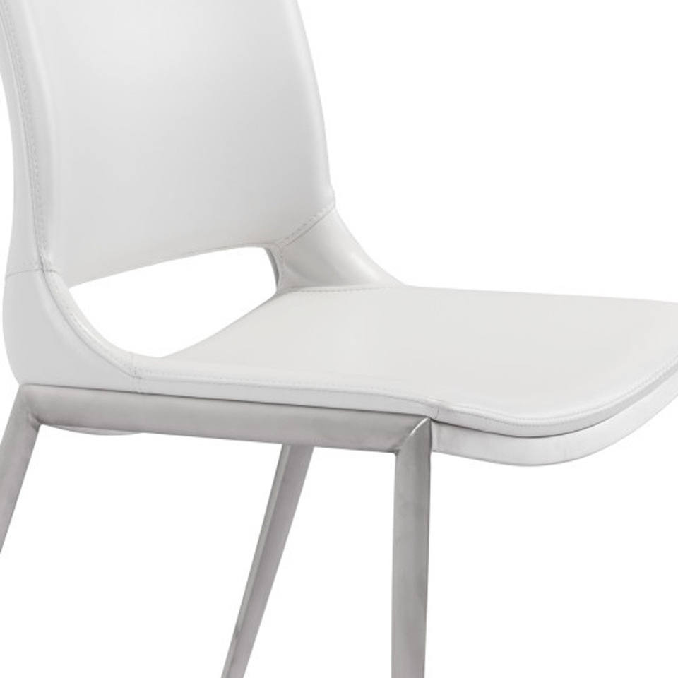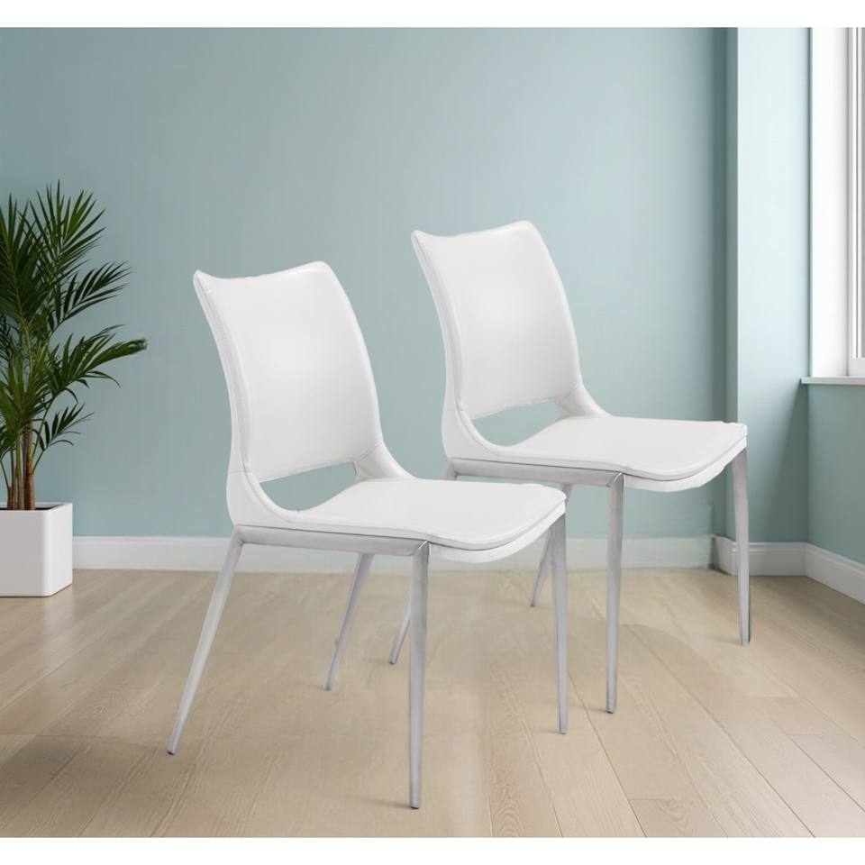 Set of Two White and Silver Upholstered Faux Leather Dining Side Chairs HMS