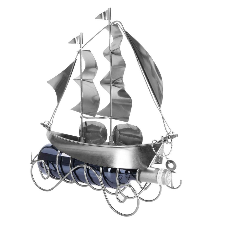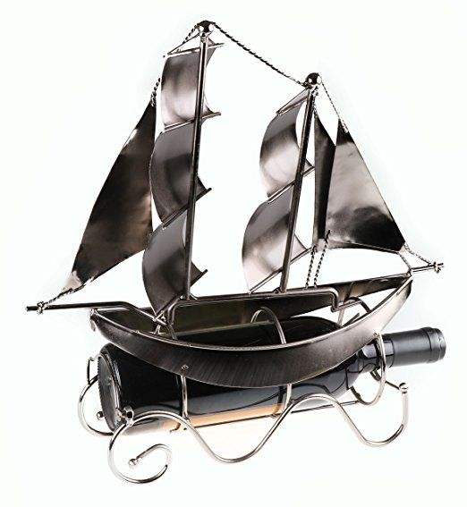 ชุดชั้นวางไวน์2ชั้นดีไซน์ทันสมัยรูปเรือ1ขวดที่วางไวน์โลหะสำหรับเป็นของขวัญแต่งงาน