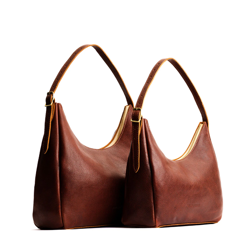 ชุดกระเป๋าโฮโบสีน้ำตาลสองใบที่มีรูปทรงนุ่มและซิปโทนสีทองเป็นคู่ที่ทันสมัยและใช้งานได้จริงในราคาขายส่ง