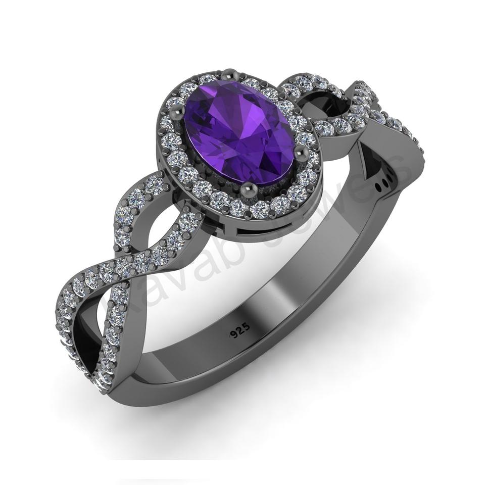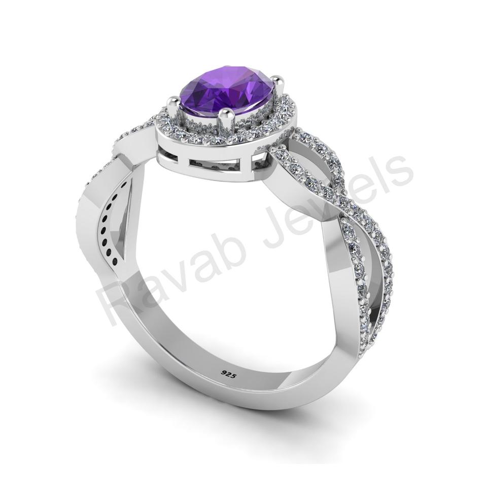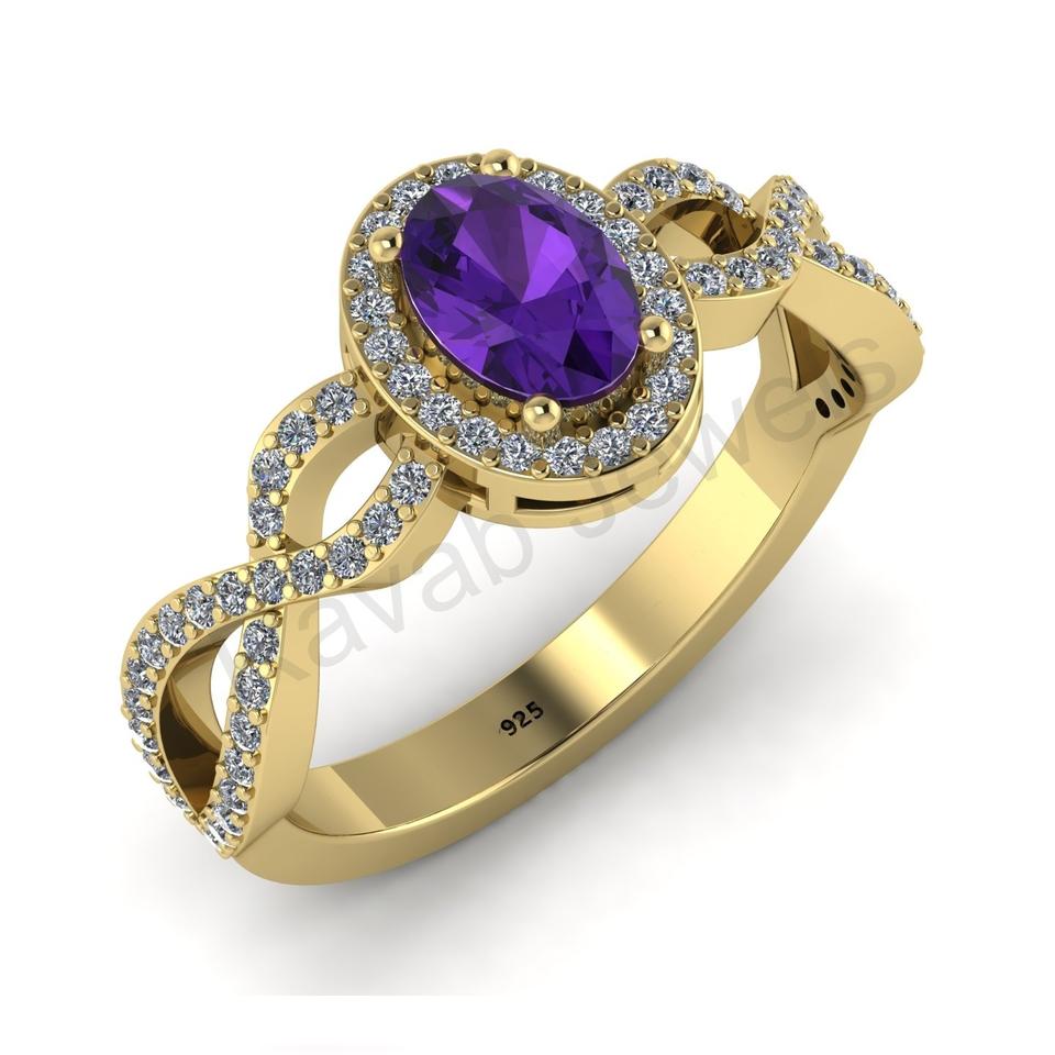 แหวนแต่งงานชุบทอง18K 925เงินสเตอร์ลิงสำหรับผู้หญิงพลอยอเมทิสต์ทรงรีแบบคลาสสิกขนาด6x4มม. ผลิตในอินเดีย