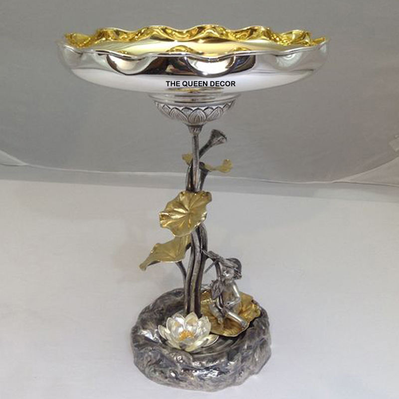 ชุดชามตกแต่งอะลูมิเนียม 2 ใบ รูปทรงแปลกตา ชุบทอง สำหรับร้านอาหารและโรงแรม สไตล์วินเทจ