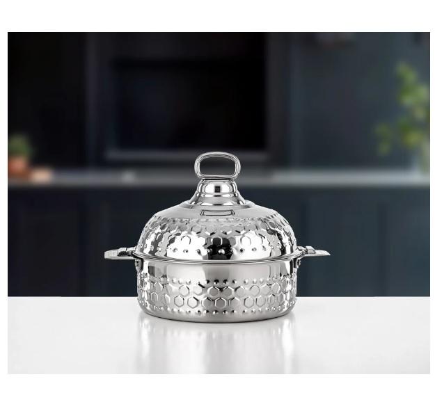 ชุดหม้อสแตนเลสทรงกลมทำมือสีเงิน 3 ชิ้น พร้อมฝาปิด เหมาะสำหรับงานแต่งงาน งานเลี้ยง และตกแต่งโต๊ะอาหาร
