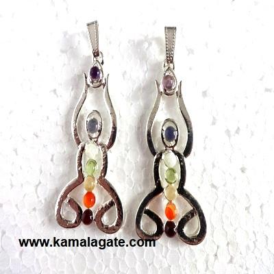 เครื่องกำเนิดพลังงานหินคริสตัลเจ็ดจักระ จี้โลหะทรงหกเหลี่ยมชุบเงินโบราณ แฟชั่นสำหรับผู้ปฏิบัติเรกิ ใช้ได้ทั้งชายและหญิง