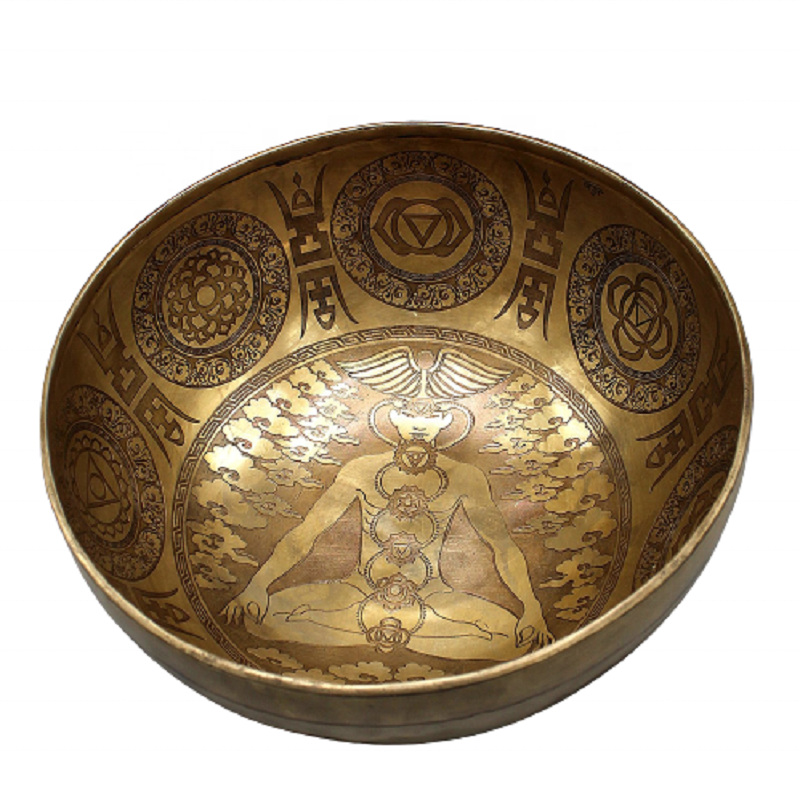 ชามร้องเพลงเจ็ดจักระแกะสลักด้วยมือ เครื่องดนตรีบำบัดจิตวิญญาณ เสียงผ่อนคลาย สำหรับตกแต่งบ้าน
