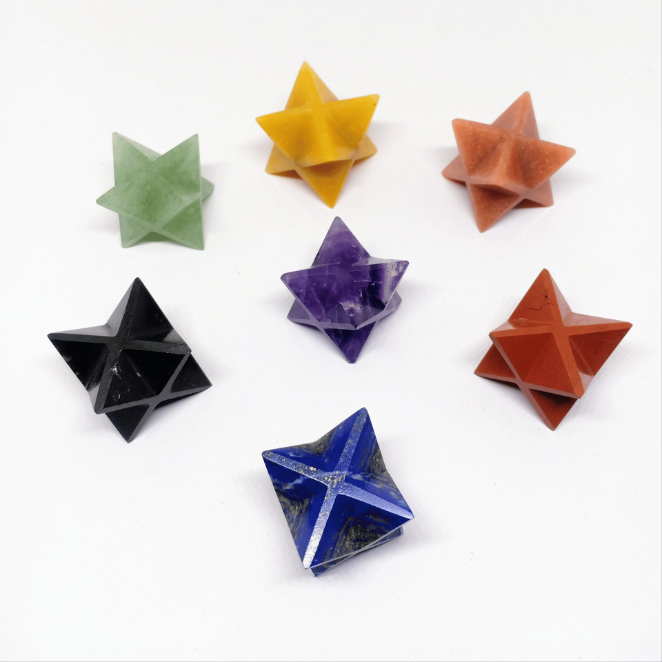 เซ็ตคริสตัลจักระ Merkaba เจ็ดชิ้นทำด้วยมือหินอัญมณีจักระบำบัดดาว Merkaba สำหรับการปรับสมดุลพลังงานและการทำสมาธิ
