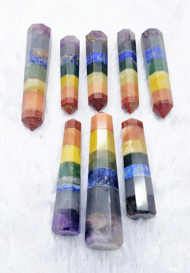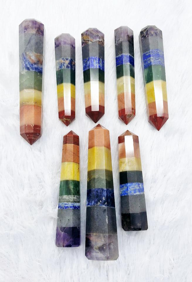 แท่งหินอาเกตธรรมชาติเจ็ดจักระ รูปทรงหอคอย สำหรับการทำสมาธิ วัชทู และการบำบัดด้วยคริสตัลเรกิ