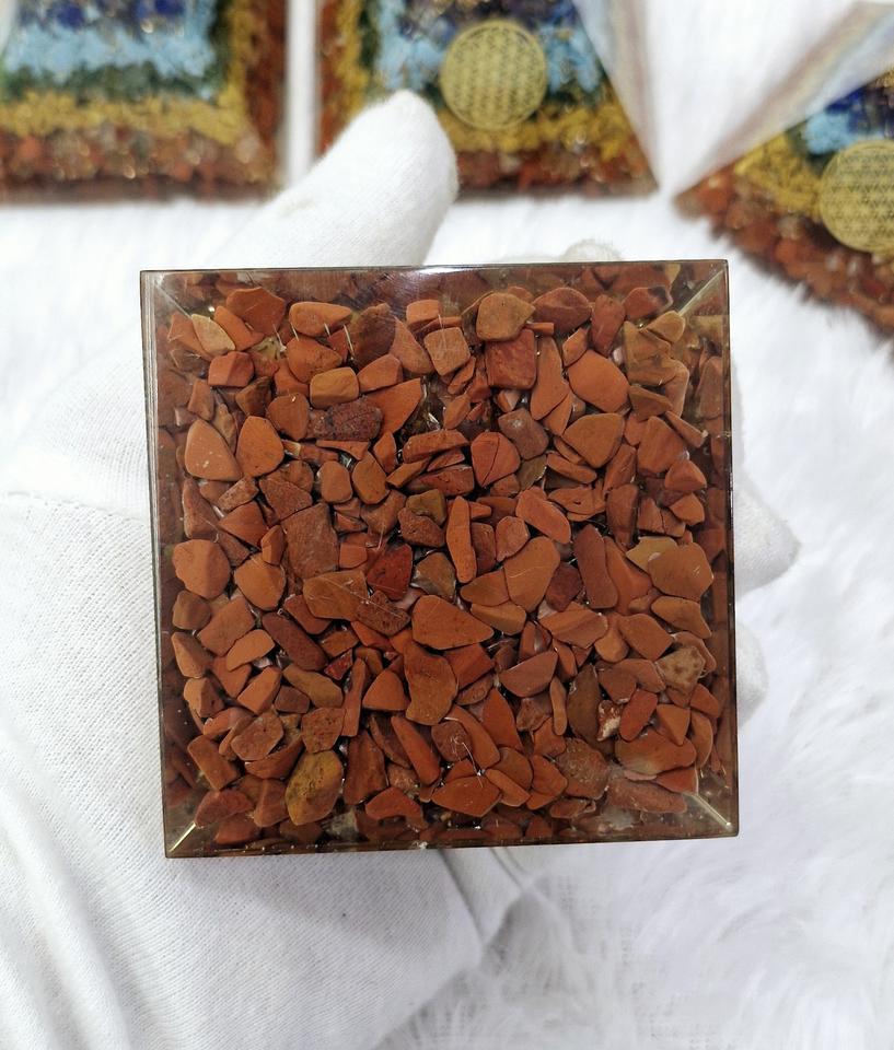 พีระมิดออร์กอนเจ็ดจักระพร้อมคริสตัลธรรมชาติ พีระมิดออร์กอนบำบัดพลังงานทำมือเพื่อพลังงานบวก