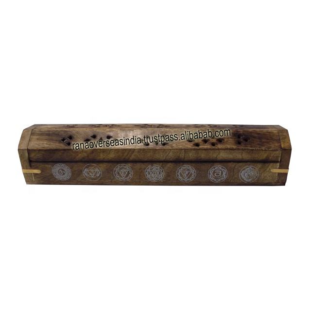 Seven Chakra ที่วางธูปไม้พิมพ์ลาย,กล่องธูปโลงศพสำหรับโยคะบำบัดด้วยกลิ่นหอมและการทำสมาธิ