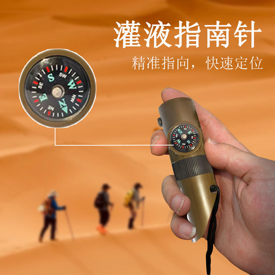 Seven In One Survival Whistle Green Compact Outdoor Camping Rescue Tool With Compass Led Light Thermometer