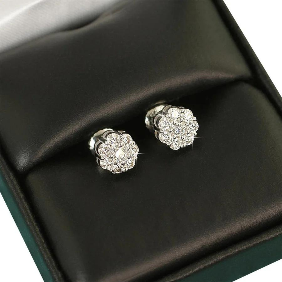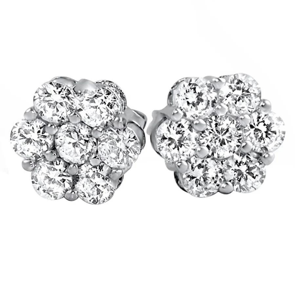 Seven Stone Real Natural Brilliant Cut Round Diamond Cluster Stud Earring for Women in 925 Sterling Silver