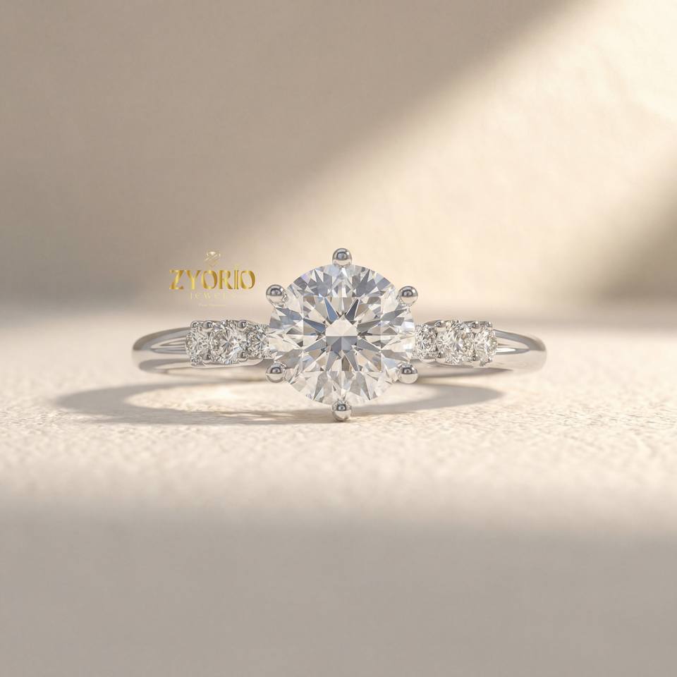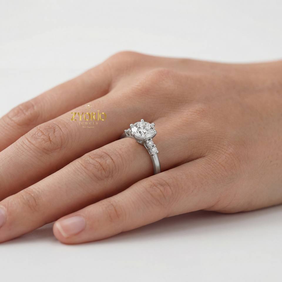 แหวนหมั้นเพชรเจ็ดเม็ด ทองคำขาวเคลือบเพชรเลี้ยงในห้องปฏิบัติการ ทอง 14K ของขวัญงานแต่งงานสำหรับผู้หญิง ดีไซน์ทันสมัย ระดับความสะอาด VS