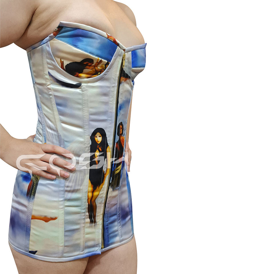 คอร์เซ็ตผ้าซาตินพิมพ์ลายสไตล์