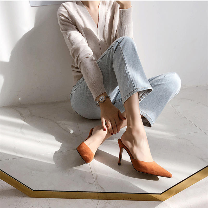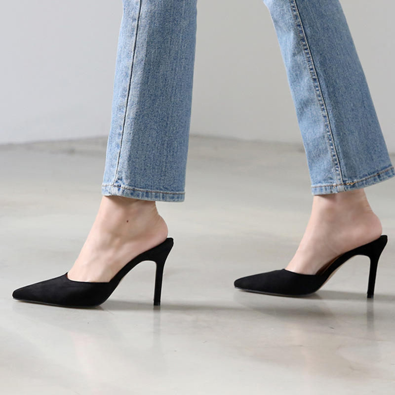 รองเท้าส้นสูงเซ็กซี่สไตล์คลับ คอลเลคชั่นใหม่ ฤดูใบไม้ผลิ 2025 รองเท้าสวมแบบสลิปออนสำหรับผู้หญิง หนังกลับ ส้นเข็ม ปลายแหลม แฟชั่นสไตล์เกาหลี