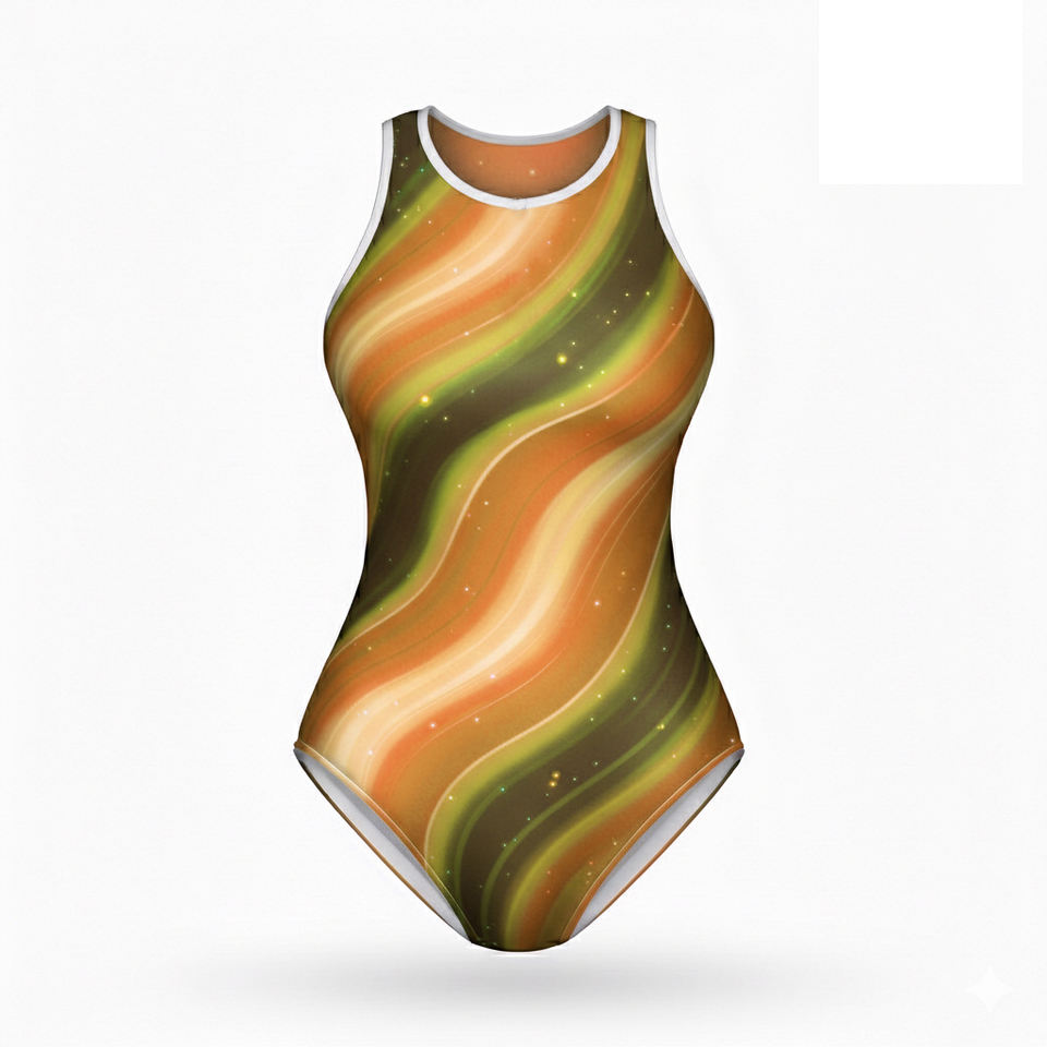 ชุดว่ายน้ำวันพีซแบบเว้าสูง ตัดเย็บด้วยด้ายสีนีออนแบบเซ็กซี่ ผ้าโพลีเอสเตอร์ พิมพ์ลายด้านหน้า ไซส์พลัส 1 สำหรับใส่ไปชายหาด
