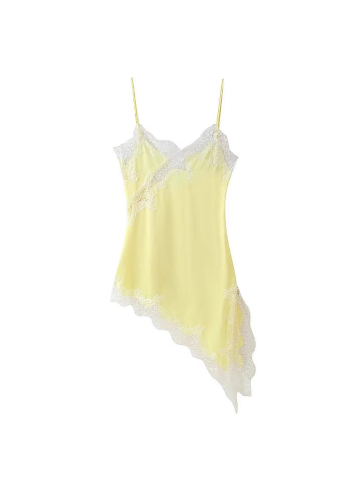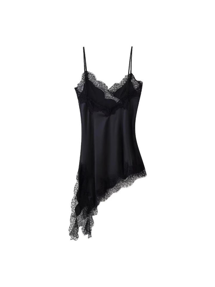 Sexy Dress for Women Patchwork Lace Edge V Neck Irregular Hem Suspender Long Dresses 2025 New Fashion Party Vestidos