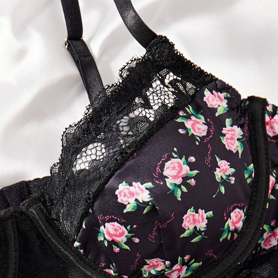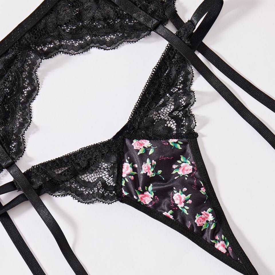 ชุดชั้นในลูกไม้ปักลายดอกไม้สุดเซ็กซี่ ขายดี ชุดบราและกางเกงในพร้อมถุงน่อง