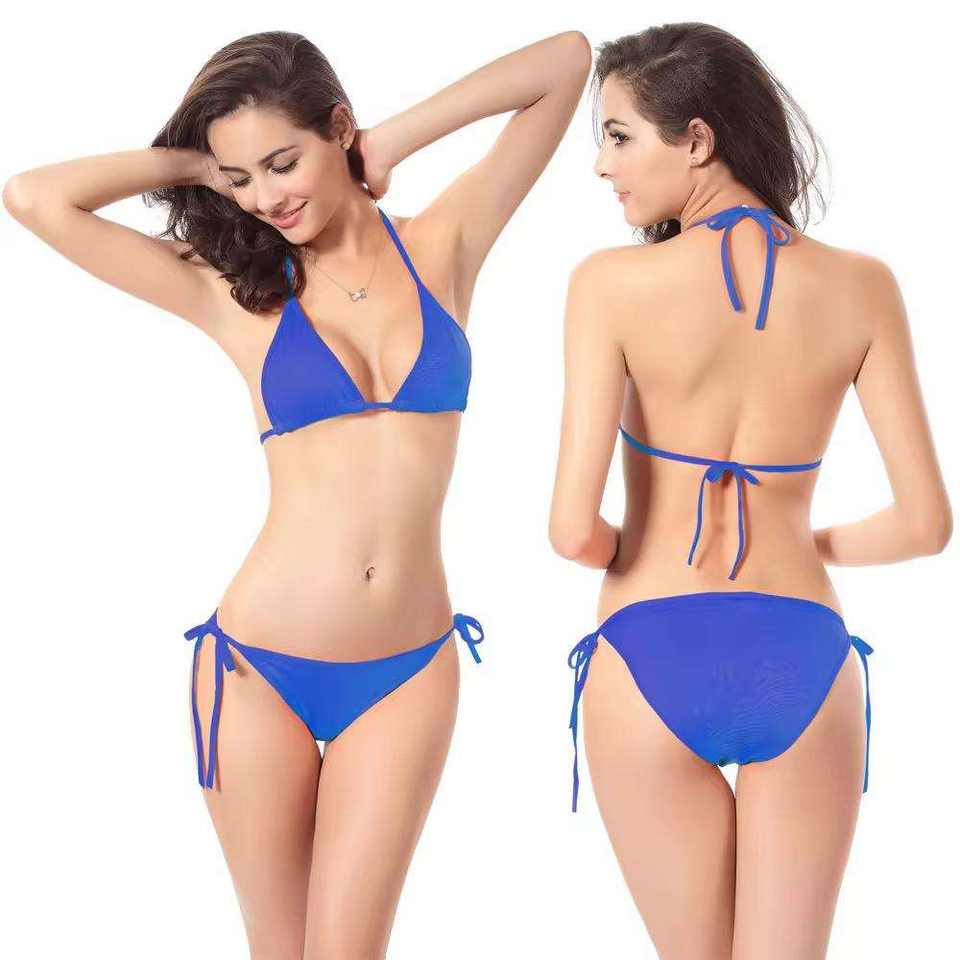 ชุดบิกินี่เซ็กซี่แบบสองชิ้นสำหรับผู้หญิง ทรงไมโครธอง ด้านหน้าเรียบ สามารถสกรีนโลโก้ได้ แห้งเร็ว ระบายอากาศดี เหมาะสำหรับใส่ไปเที่ยวทะเลในช่วงฤดูร้อน