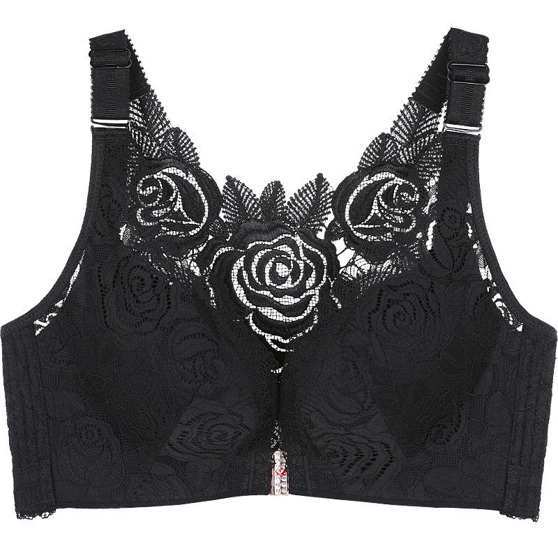 บราลูกไม้เซ็กซี่ปักลายดอกกุหลาบแบบผูกคอ ไร้สาย ไร้โครงเสริมฟองน้ำ ไซส์ใหญ่ ผ้าโพลีเอสเตอร์ สำหรับผู้หญิง ออกกำลังกาย