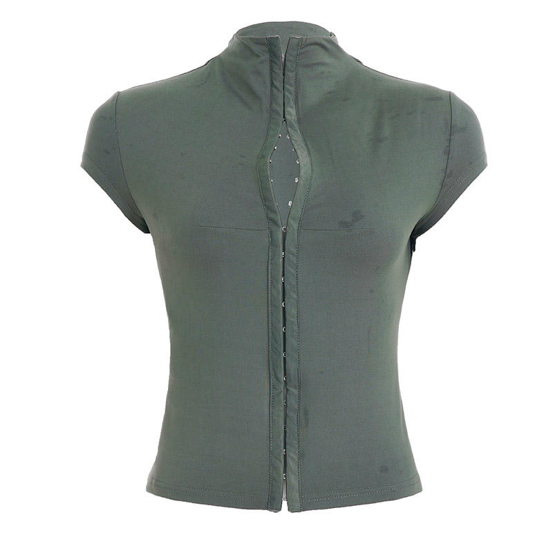 เสื้อครอปท็อปไหมพรมคอจีนทรงเข้ารูปสำหรับผู้หญิง แบบสั้น สีพื้น ติดกระดุมแบบถอดได้ ระบายอากาศได้ดี ผ้าเนื้อแน่น พิมพ์ลายดิจิตอล