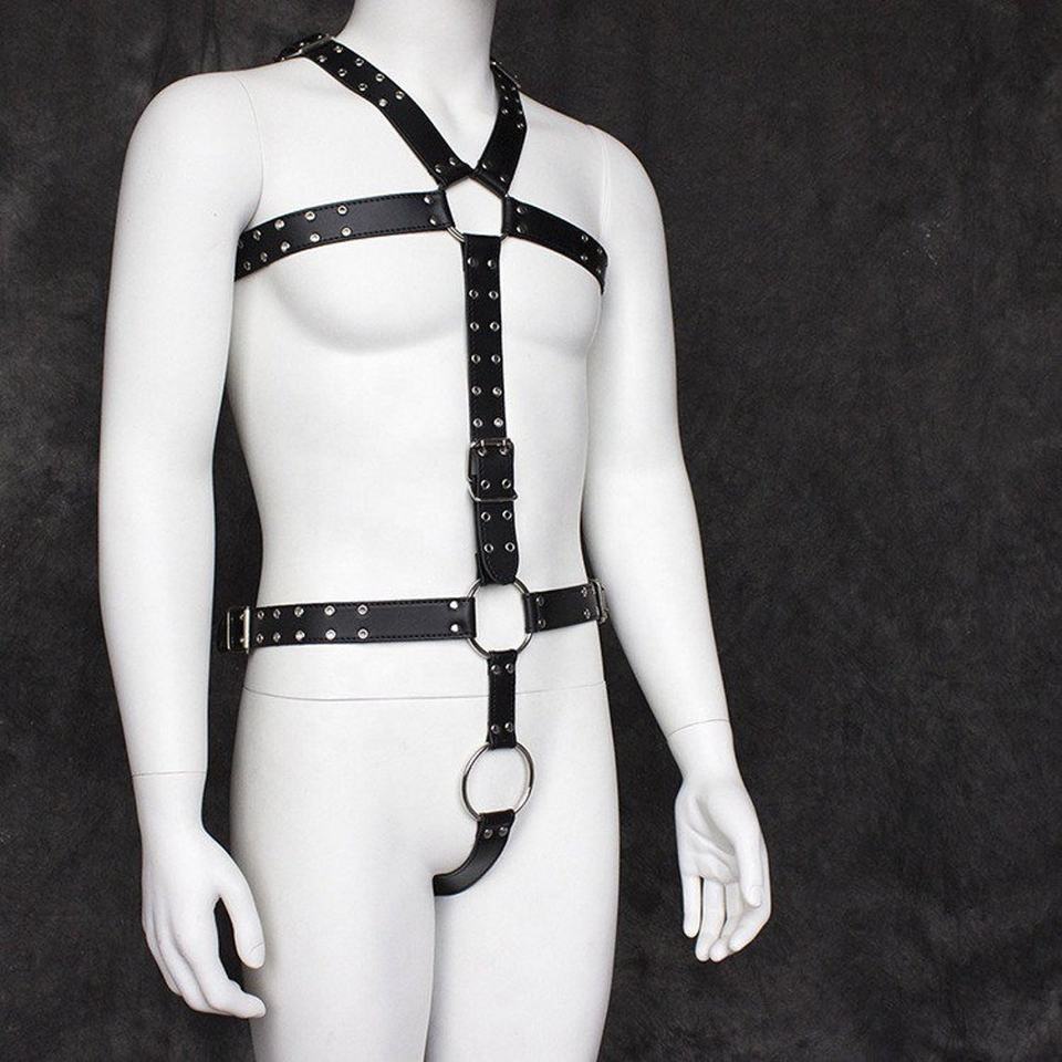 สายรัดตัวผู้ชายเซ็กซี่แบบเต็มตัวพร้อมรูดิลโด้สำหรับการเล่นทางเพศ BDSM BGO-0068