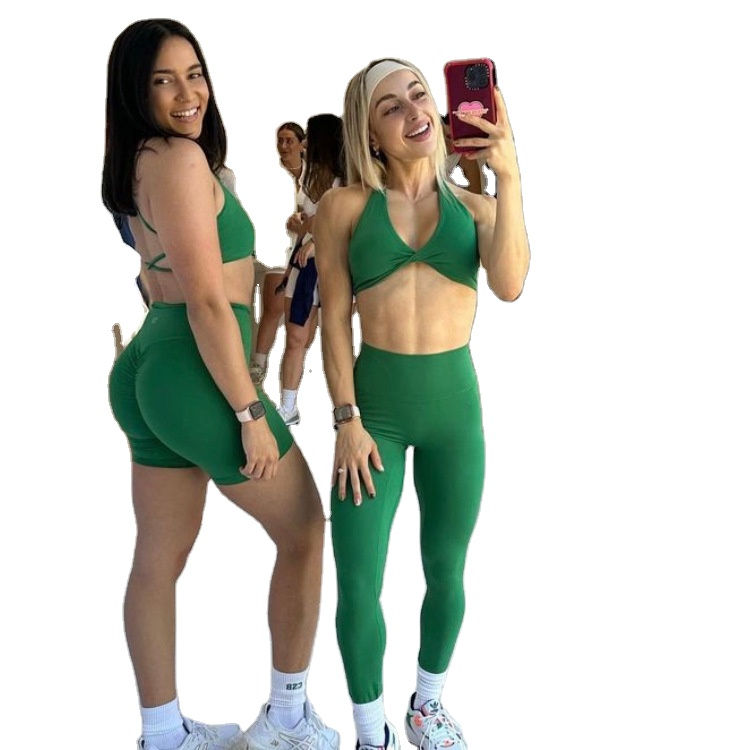 บราโยคะกีฬาไนลอนเซ็กซี่ แบบเย็บสี่เข็มหกเส้น บราออกกำลังกายสวยเก๋ น้ำหนักเบา แห้งเร็ว ระบายอากาศดี ดีไซน์บิดด้านหน้า ช่วยยกกระชับ