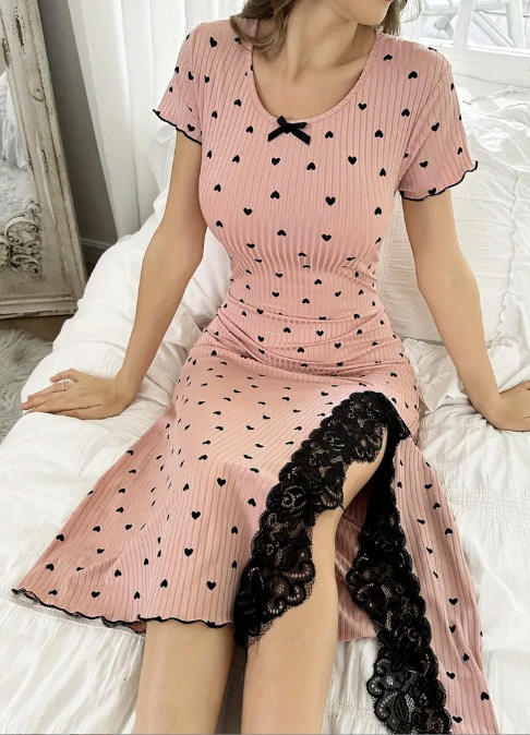 ชุดนอนเซ็กซี่คอกลมลายหัวใจ