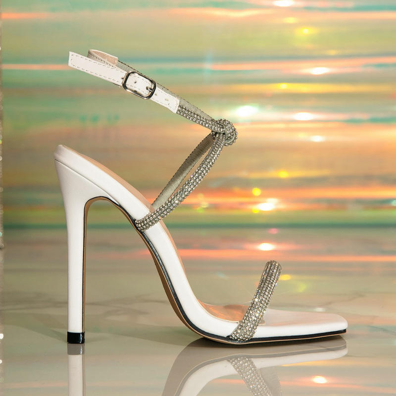 รองเท้าส้นเข็มแบบรัดส้นประดับเพชรทรงหัวมนเซ็กซี่
