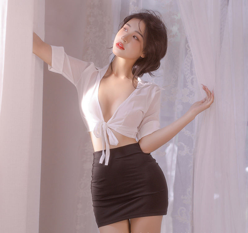 ชุดยูนิฟอร์มเลขาสุดเซ็กซี่ ชุดชั้นในไนลอนบางเบา ซีทรู กระโปรงรัดรูป ชุดทำงานมืออาชีพ ผลิตภัณฑ์เซ็กซี่สำหรับผู้หญิง