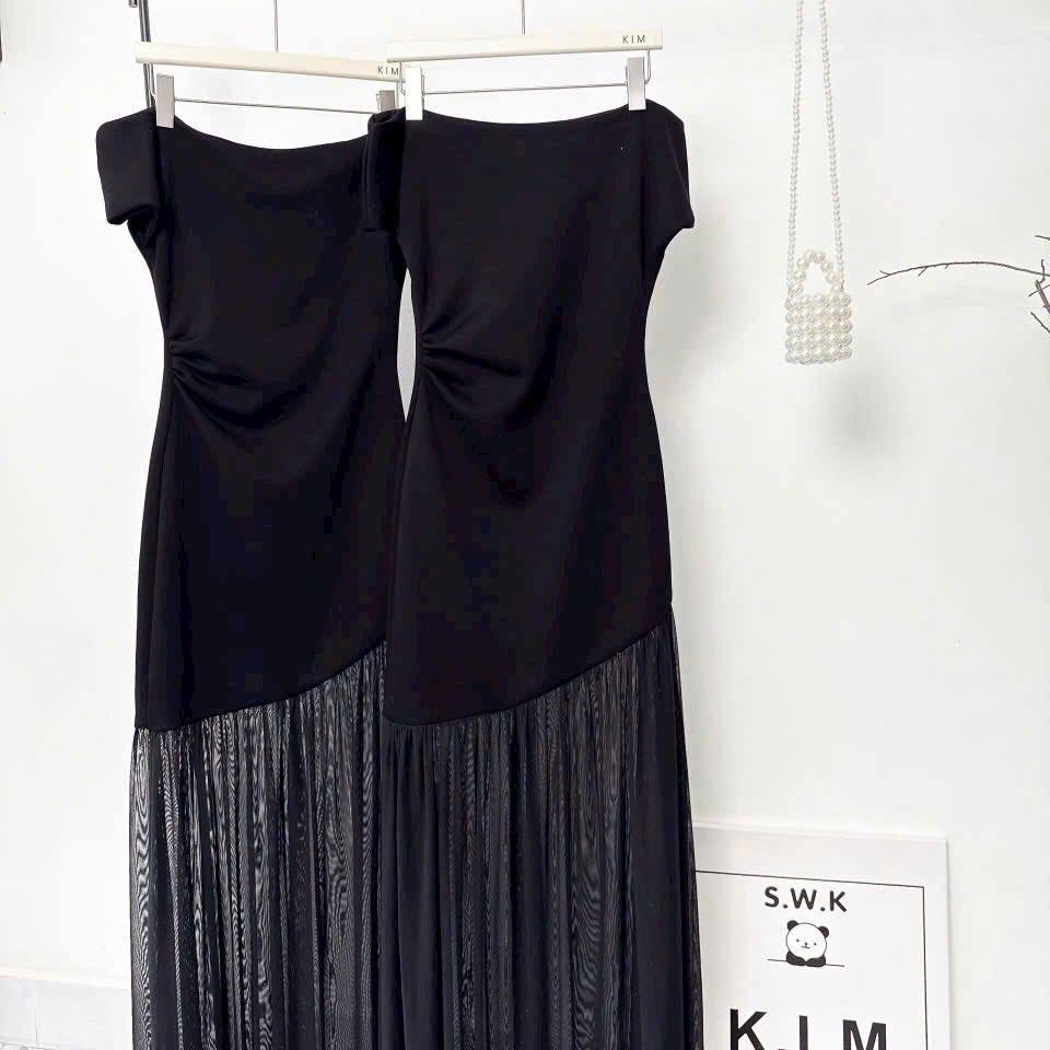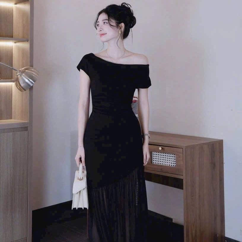 ชุดเดรสยาวสีดำแบบเซ็กซี่เข้ารูปสำหรับผู้หญิงใส่กลางคืน