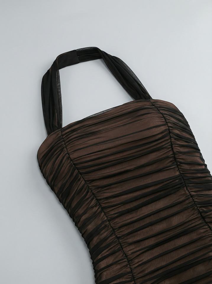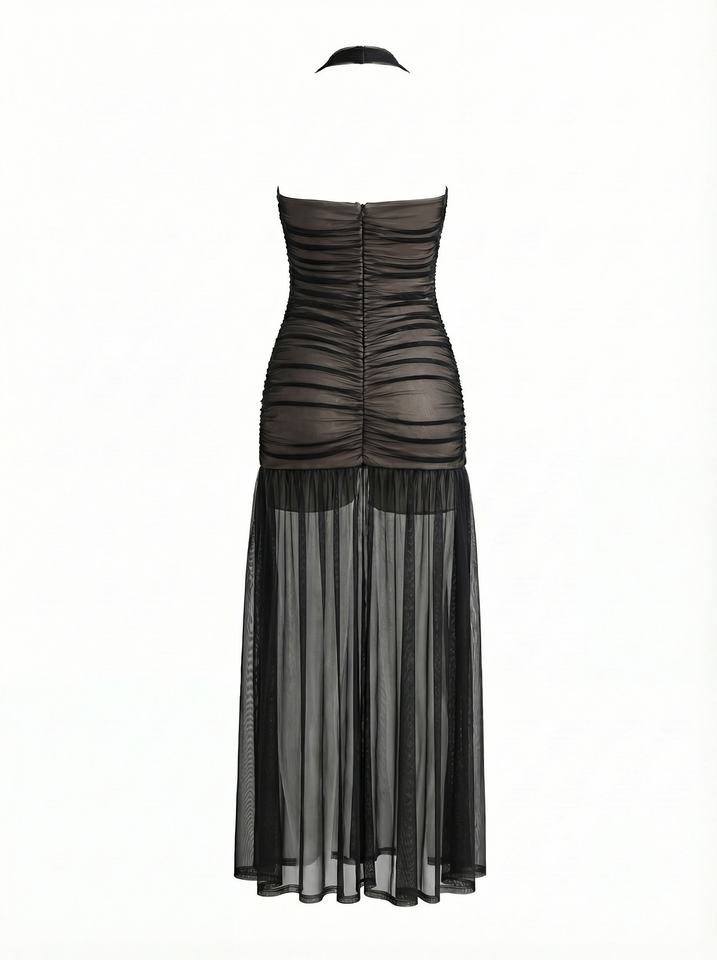 เดรสยาวรัดรูปผ้าตาข่ายซีทรูแบบผูกคอ สไตล์เซ็กซี่สำหรับฤดูใบไม้ผลิ เหมาะสำหรับงานปาร์ตี้ตอนเย็น งานกลางคืน และชุดเที่ยวพักผ่อน