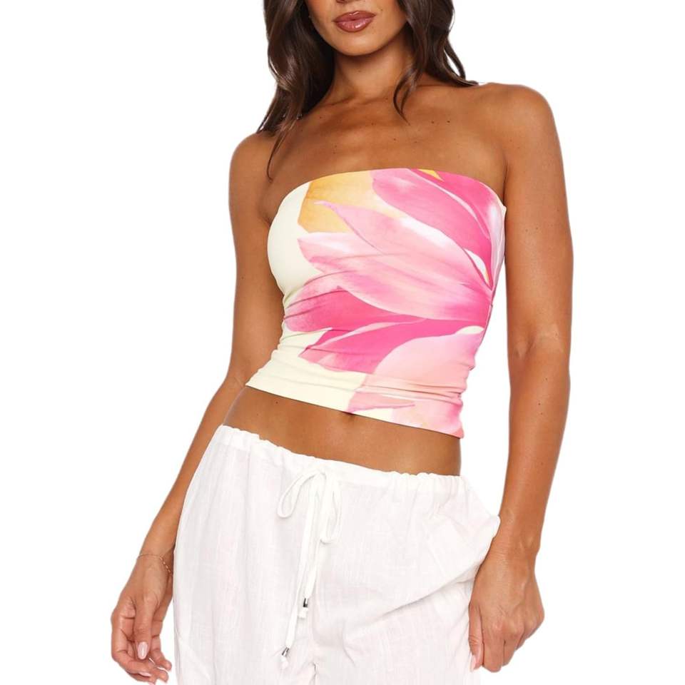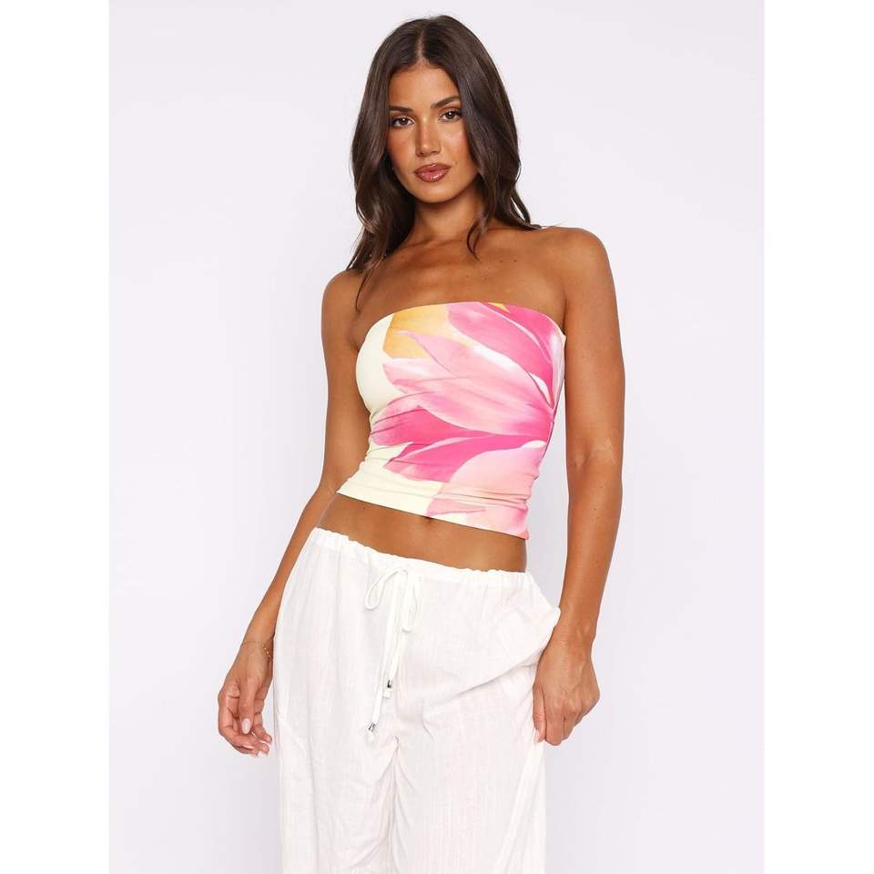 เสื้อครอปท็อปแบบสายเดี่ยวเซ็กซี่สำหรับผู้หญิง พิมพ์ลายแบบซับลิเมชั่น เนื้อผ้าสแปนเด็กซ์โพลีเอสเตอร์ถักระบายอากาศ เหมาะสำหรับชุดวันหยุด