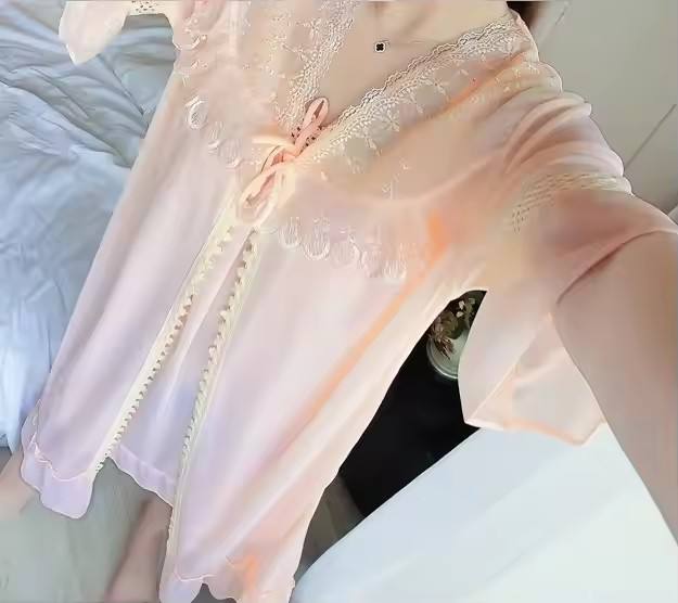 ชุดนอนเซ็กซี่คอวี เสื้อคลุมนอน ชุดนอนเจ้าหญิง ชุดนอนผู้หญิง + เสื้อคลุม