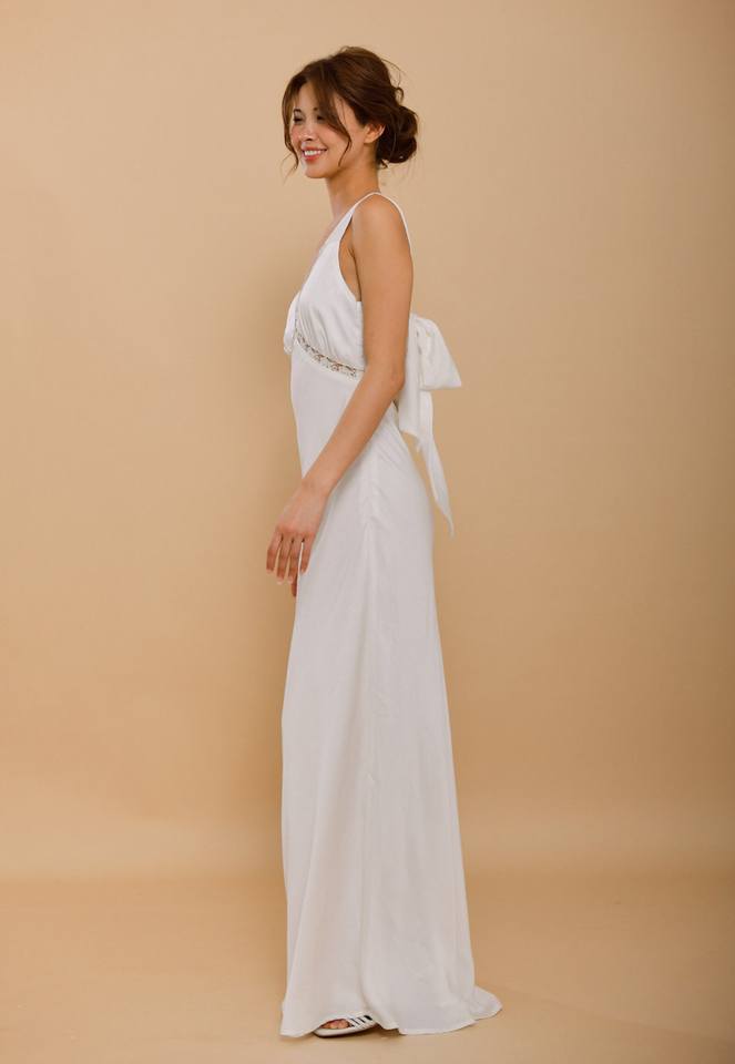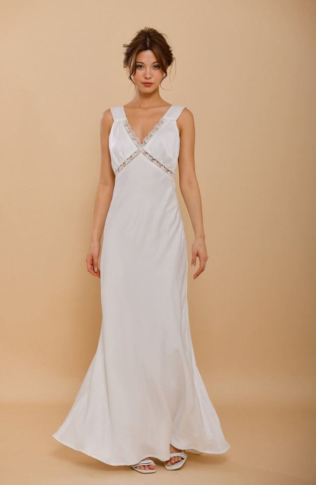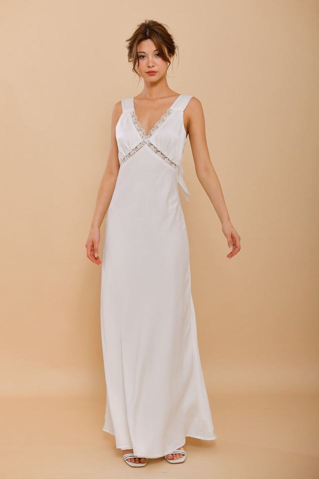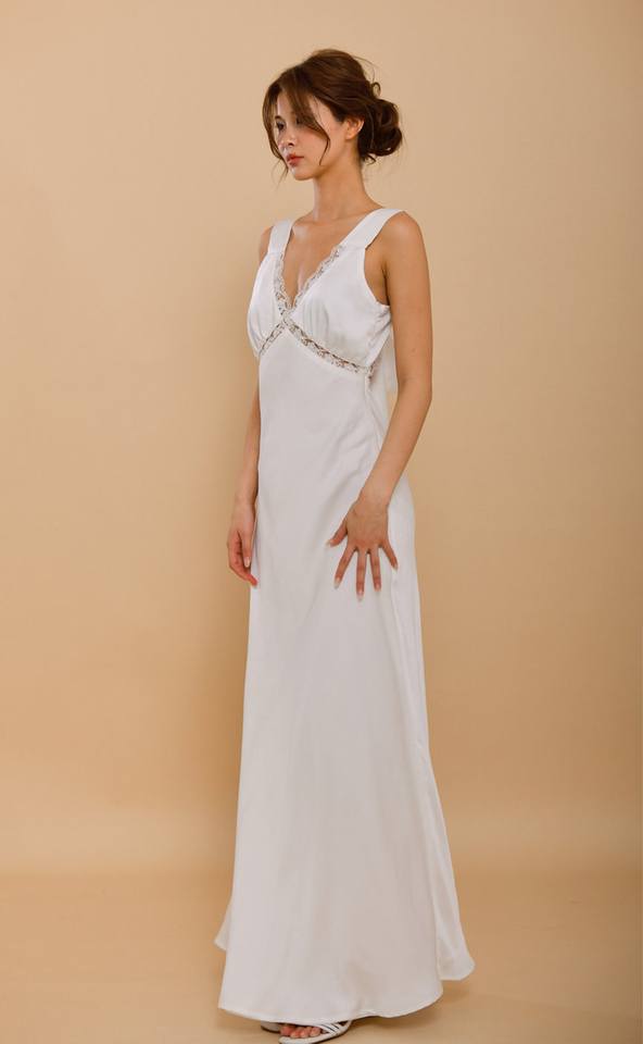 Sexy White 2025 Girl Wedding White Silk Dress with Lace Back Ties Vintage Silk Dress for Women Simple White Sleeveless Dress