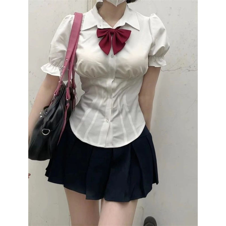 Sexy White Blouses Women Korean Fashion Shirt Chic Harajuku Preppy Elegant Female Japanese Casual JK Slim Y2k Blusas Cute Tops -