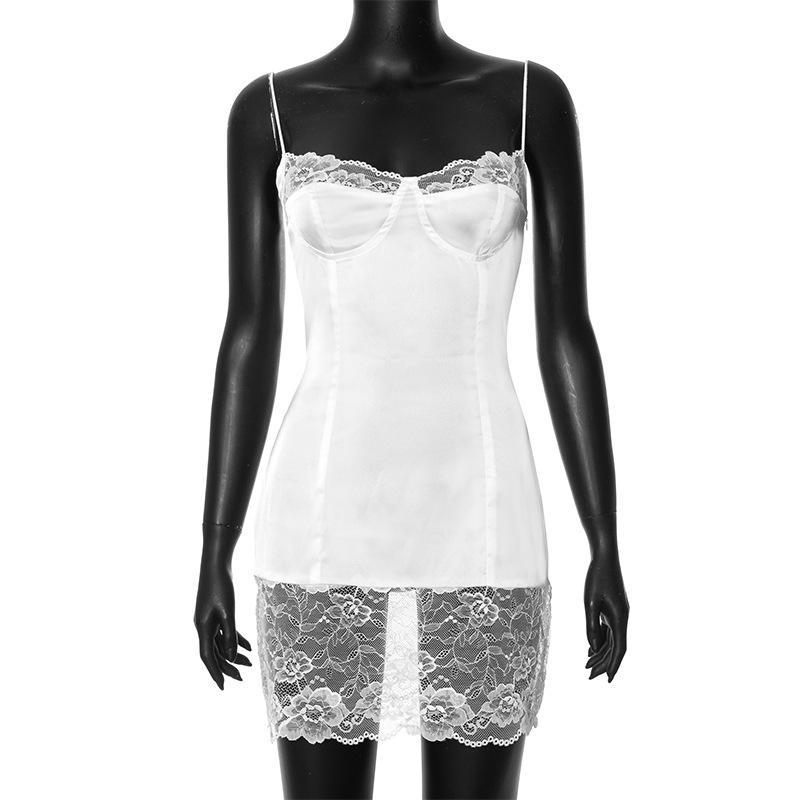ผู้หญิงเซ็กซี่ชุดลูกไม้แฟชั่นสีทึบY2K Slitกระโปรงสั้นน่ารักEmoสาวสบายซาตินความงามสลิงชุด 2784