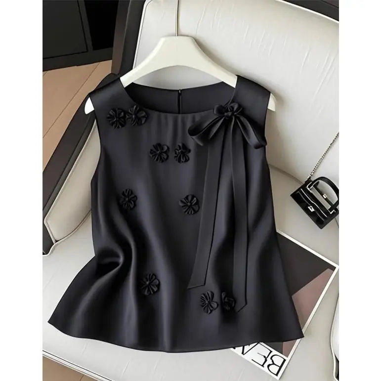 เสื้อฝึกซ้อมผู้หญิงเซ็กซี่ คอกลม แขนสั้น ผ้าไหมถัก 100% ทรงหลวม สีดำ