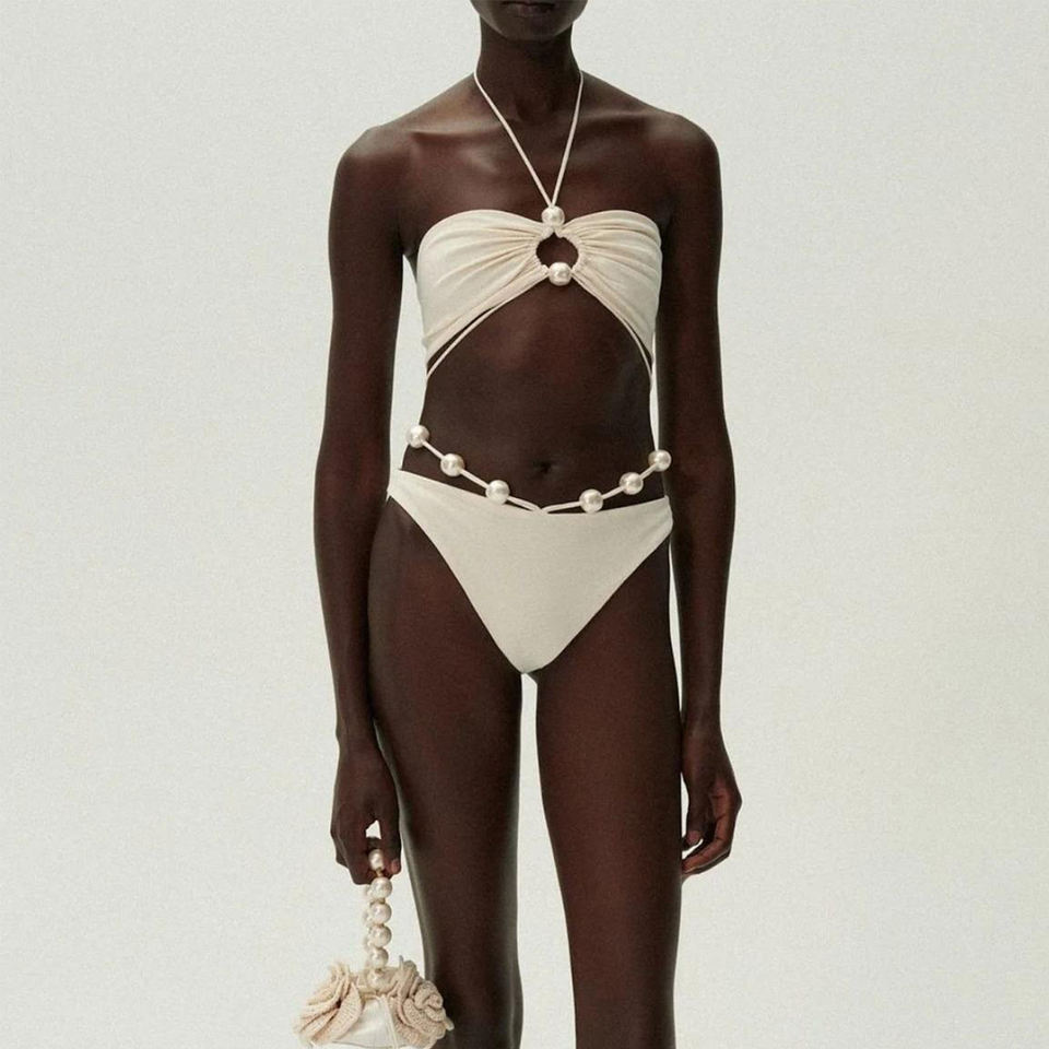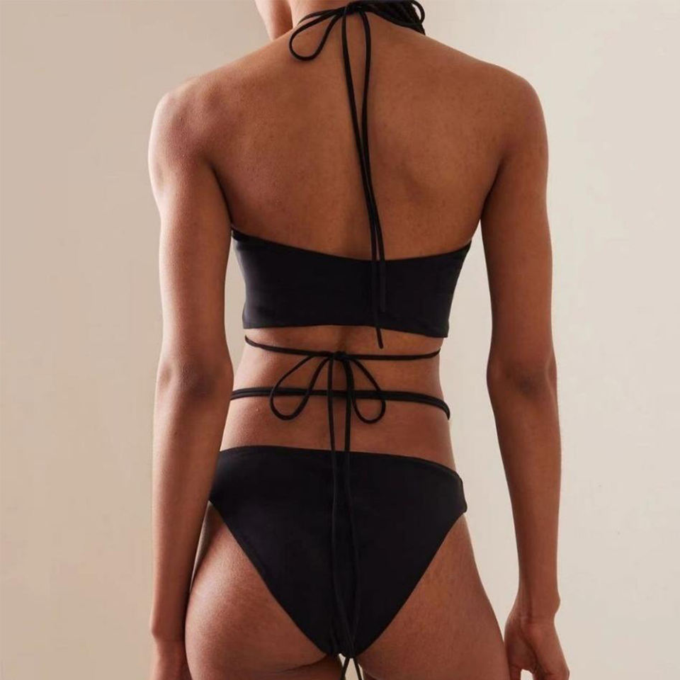 ชุดบิกินี่สองชิ้นสุดเซ็กซี่สำหรับผู้หญิงชุดบิกินี่สองชิ้นพร้อมเนคไททรงสามเหลี่ยมด้านบนและด้านข้างออกแบบมาเพื่อความพอดีกับรูปร่างของชายหาด