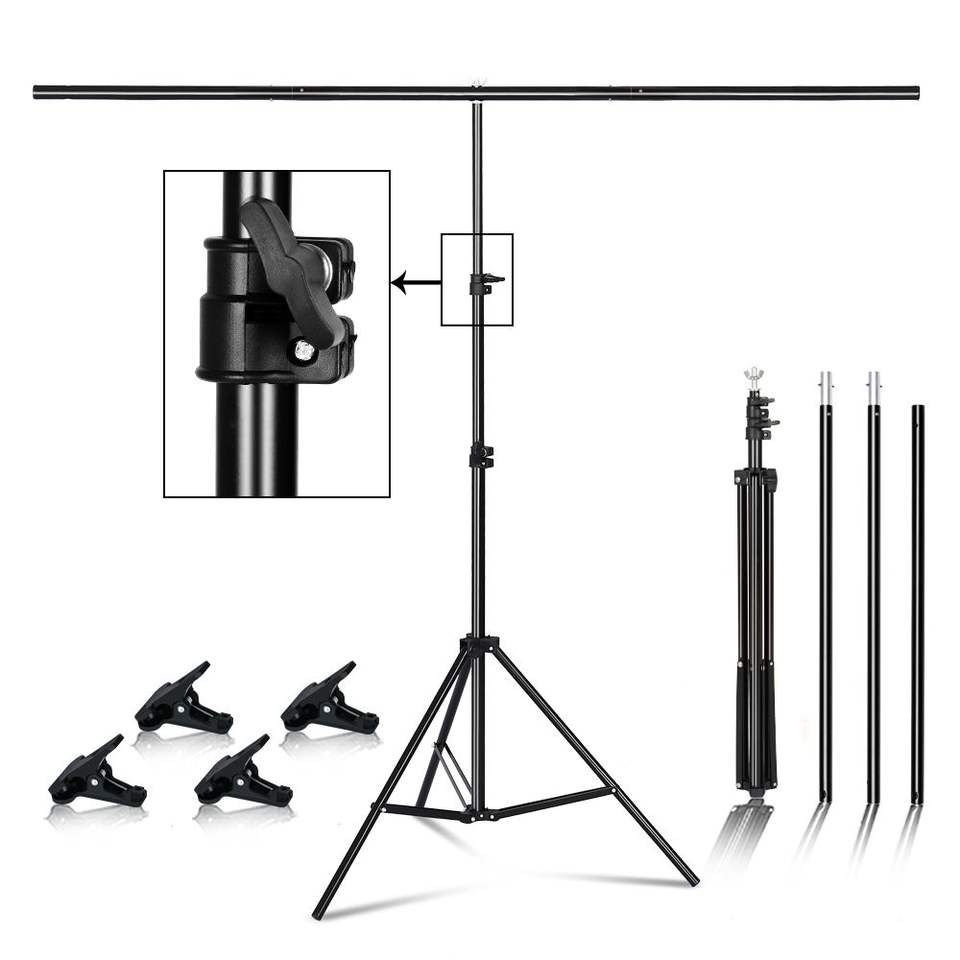 ขาตั้งฉากหลังโลหะรูปตัว T ขนาด 10 ฟุต สำหรับสตูดิโอถ่ายภาพ ฉากเขียว อุปกรณ์เสริมสำหรับถ่ายภาพและวิดีโอ