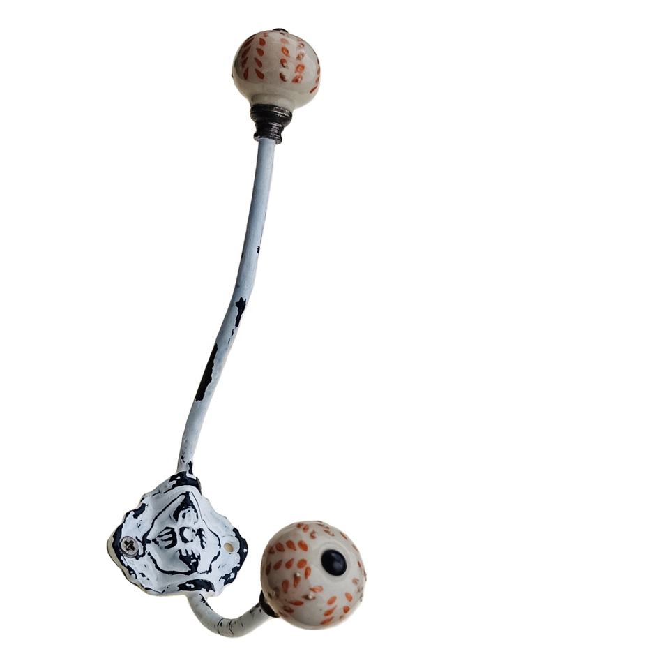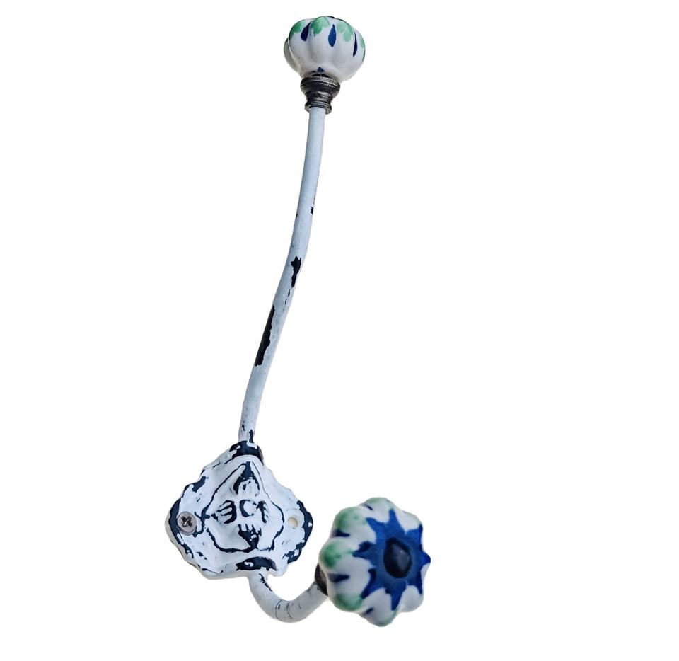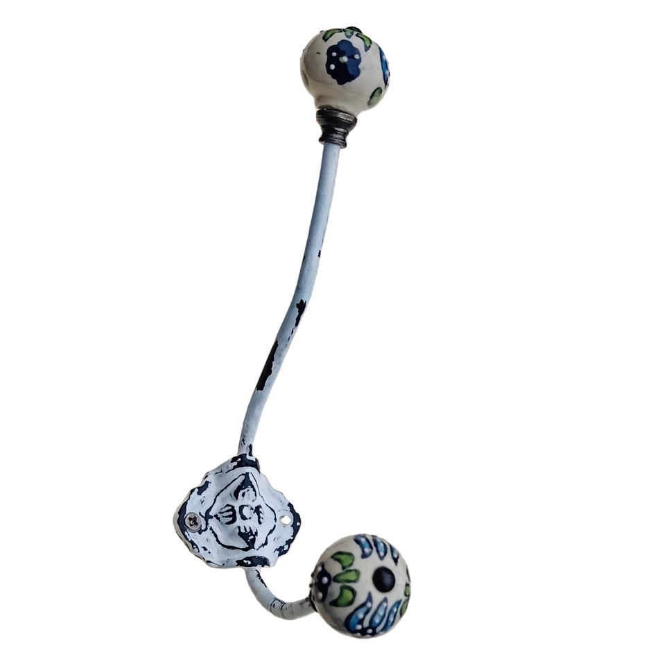 ตะขอเสื้อโค้ทและหมวกเหล็กหล่อเก๋ไก๋ทันสมัยสีเขียวอ่อนพร้อมตะขอลูกบิดเซรามิกและรางสินค้า