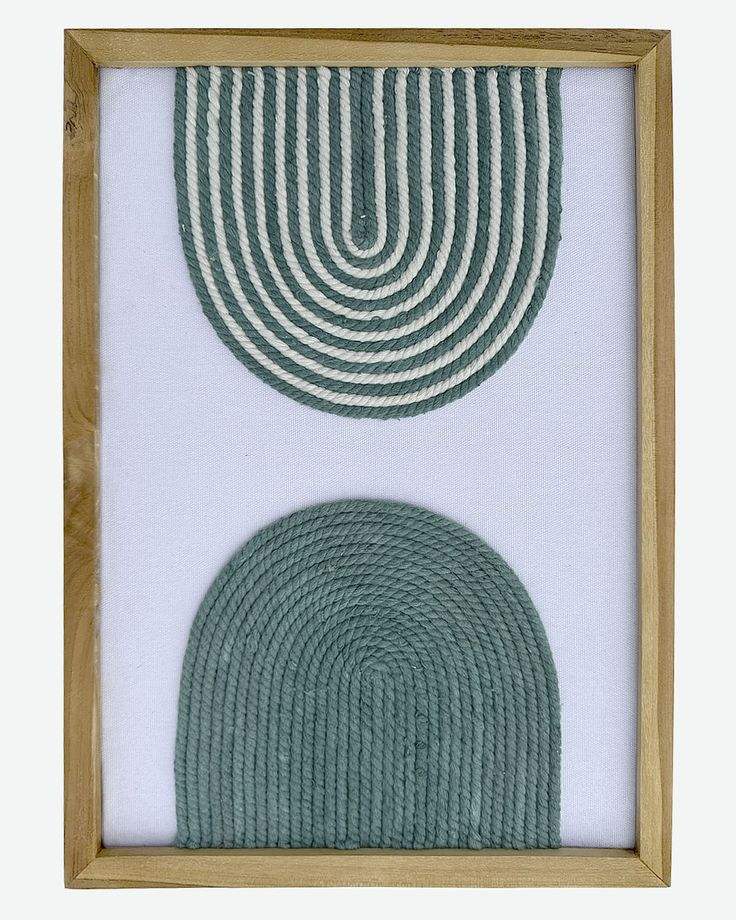 กล่องเชือกเงาศิลปะโมเดิร์นสีเขียวกึ่งวงกลมผ้าฝ้ายกรอบแขวนผนังผ้าใบเรขาคณิต3D สำหรับตกแต่งบ้าน